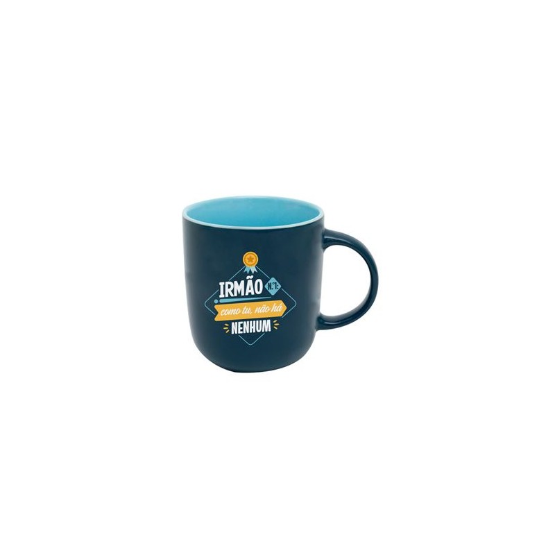 Caneca de cerâmica com mensagem dirigida a irmãos.