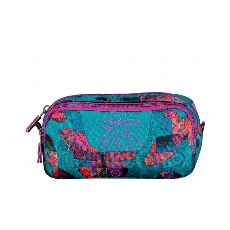 Estojo produzido em material eco-friendly RPET, com 19.5 x 8.5 x 6 cm, e 2 fechos.